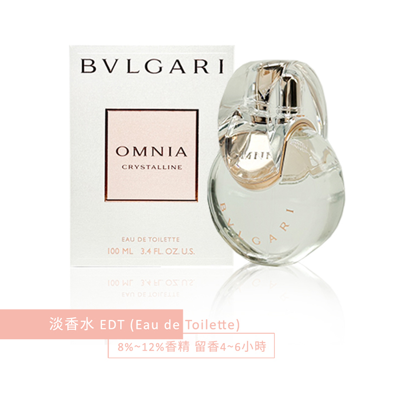Omnia Crystalline前味就如清晨的露水般透明,佛手柑、香檸、橙花醇及蜜柑的濃郁香味與竹子及豐山水梨的果香相互融合,瞬間就能令人感受到愉悅的朝氣。蓮花的優雅香氣混合了白牡丹及山百合的芳香,添加了幾許的柔媚韻味。 後味令人醉心的麝香加以混合了擁有木質氣息的琥珀、熱帶伐木及檀香。