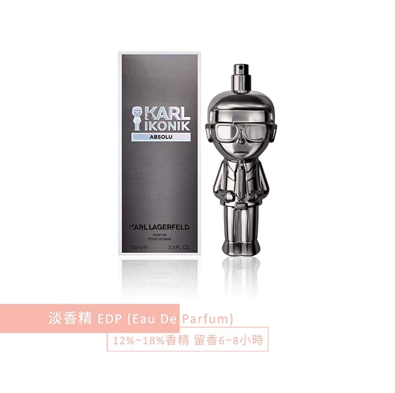 兩款全新大膽香氛加入KARL IKONIK系列,以香精呈現,帶來令人著迷的深邃體驗:時尚大帝‧ 太空灰香精,時尚大帝‧琥珀金香精全新鍍鉻效果,演繹經典輪廓,設計精美,堪稱收藏佳品。瓶身飾有時尚界最經典的輪廓之一:卡爾拉格斐 (Karl Lagerfeld) 標誌性的馬尾辮、神態舉止以及雙手緊握西裝翻領的姿態,令人過目難忘。