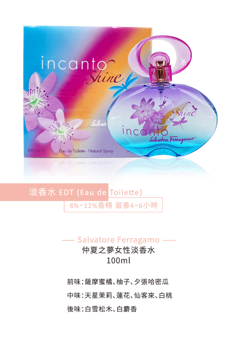 前味是馥郁多汁的鳳梨、百香果與佛手柑。中味是小倉蘭、充滿女人味的粉紅牡丹交錯著葡萄園桃子香。後味為溫暖的白雪松木,琥珀及麝香,喚起肌膚被溫暖陽光包圍所散發的香氛。 香水瓶身的色采就像擷取蔚藍天空中的一抹彩虹。粉嫰的花朵與蜻蜓呈現出充滿陽光的純粹歡愉。